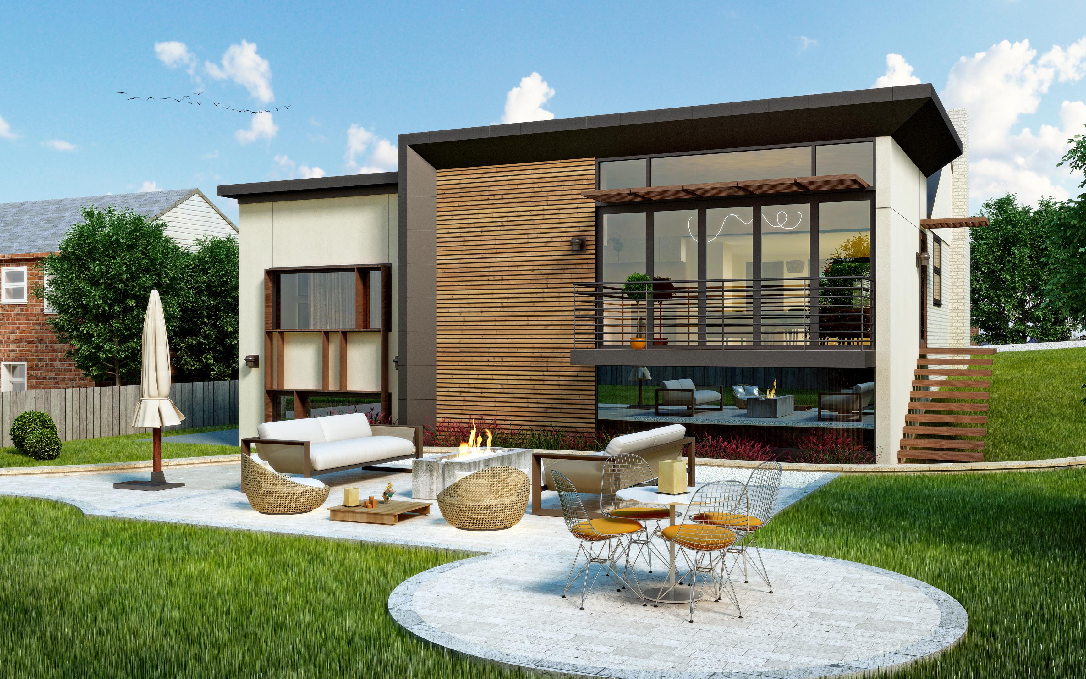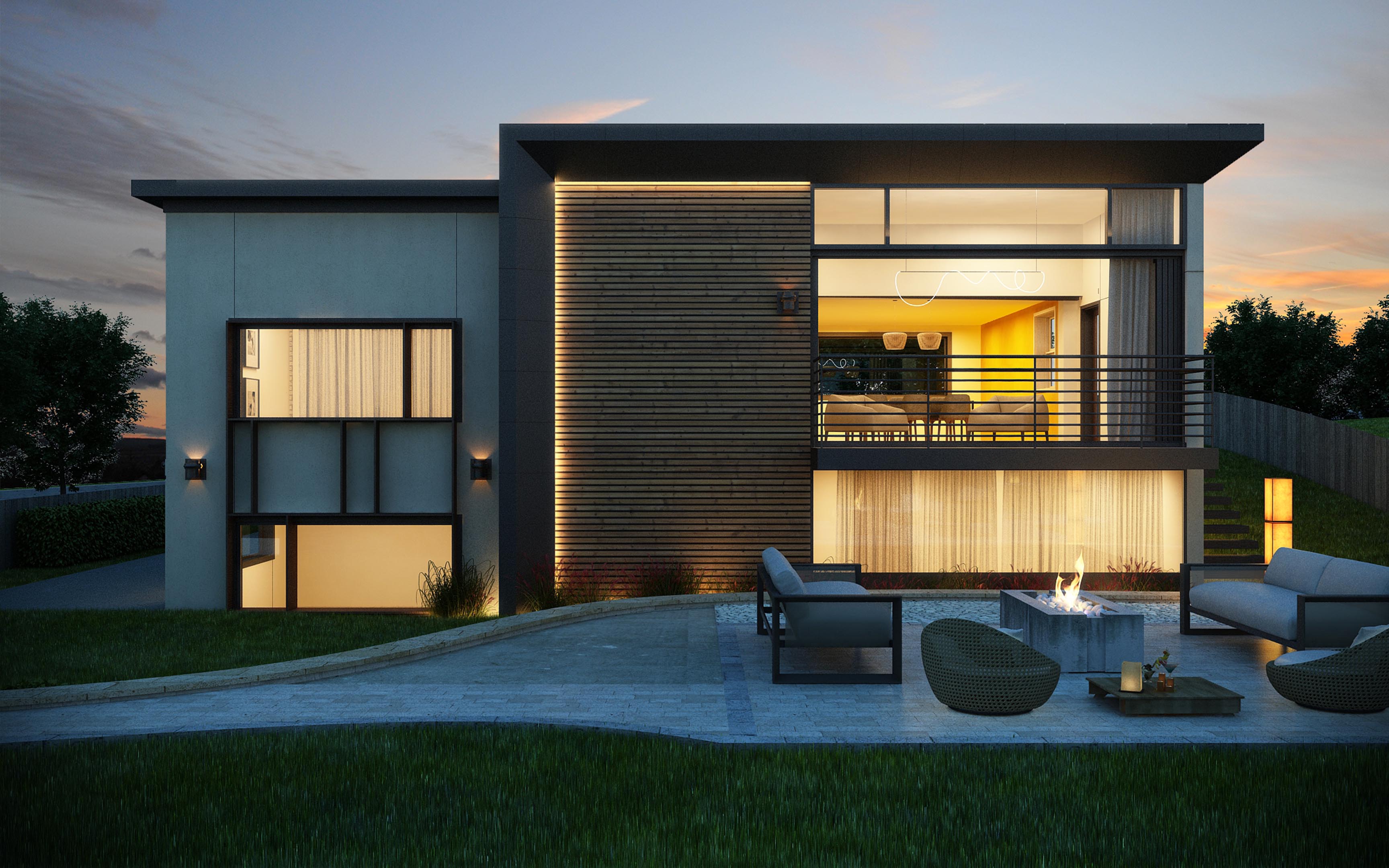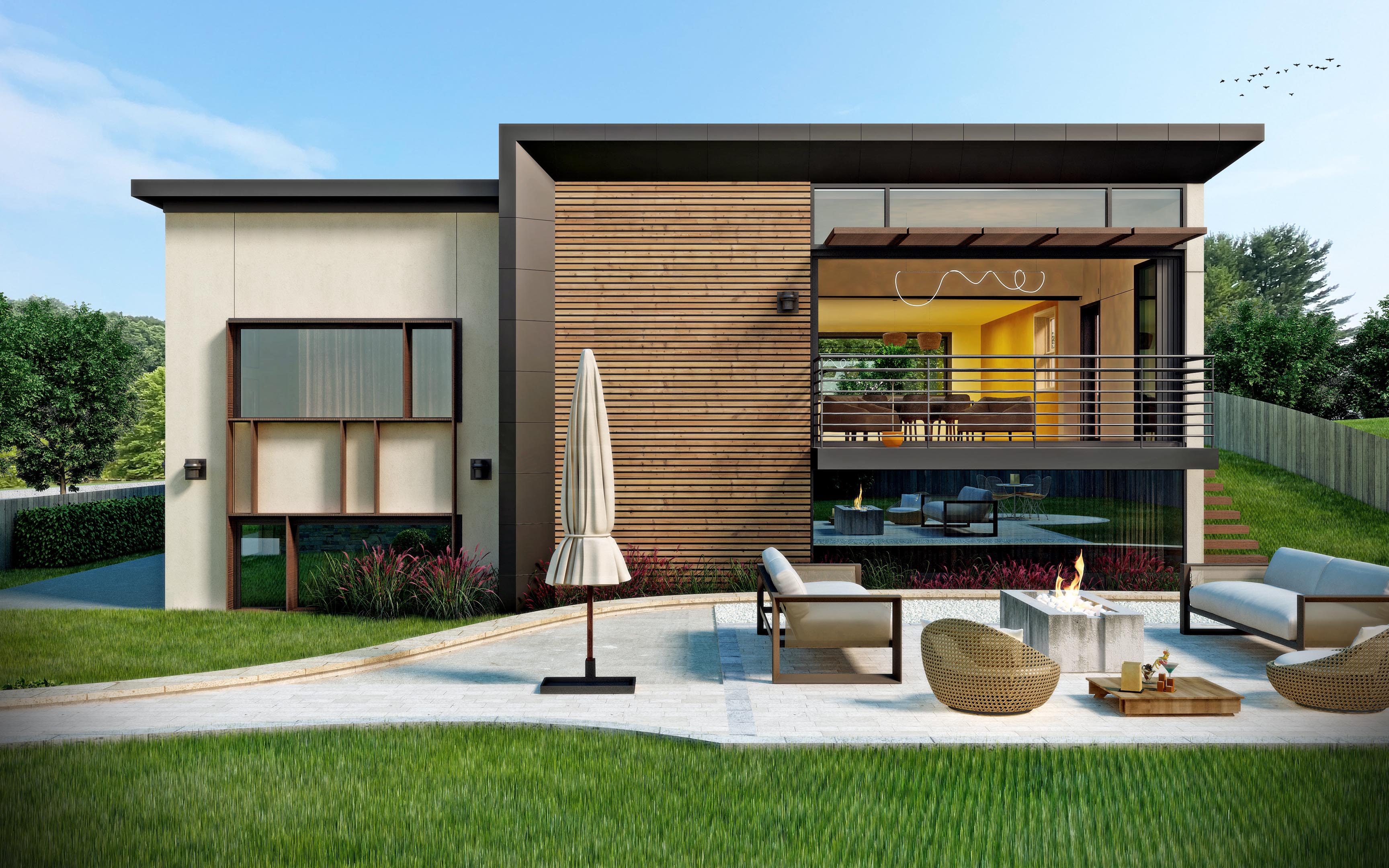 The eastern end of Long Island has a rich history of architect designed beach houses. Located off renowned Dune Road, where most houses are many times its size, the site, known as a flag lot, is one of the last remaining of its kind, in that it is right on the ocean, riding the crest of the dune. Due to the constraints of the allowable building area, the house is located past the current allowable building line and replaces a dilapidated beach bungalow which was falling apart due to the crashing waves. The house is on a long, thin barrier island, connected back to mainland by bridges, allowing it to have views south to the immediacy of the ocean and north to the bay and marshland beyond. The client is a young family living in large apartment in downtown Manhattan. They arrive by car down a long drive and up an entry ramp over the natural dune landscape to a house that is rather small compared to their apartment. It is the opposite of most who have small apartments in the city and larger second homes to get away. Utilizing every available amount of square footage, and sited in the only location allowed by zoning, this compact 2200 sf, two story double wide typology home contains 4 bedrooms and a small office. Sitting atop a dune that was required to be rebuilt prior to construction, the main level communal space with its wall of floor to ceiling glass has the effect of sitting on the beach while within the house, but with access to all the comforts of home. Atop the second level, which contains three bedrooms and a bunk room, interior stairs lead to roof deck with a fireplace, hot tub, space for morning yoga, and commanding views up and down the beach and over surrounding houses.